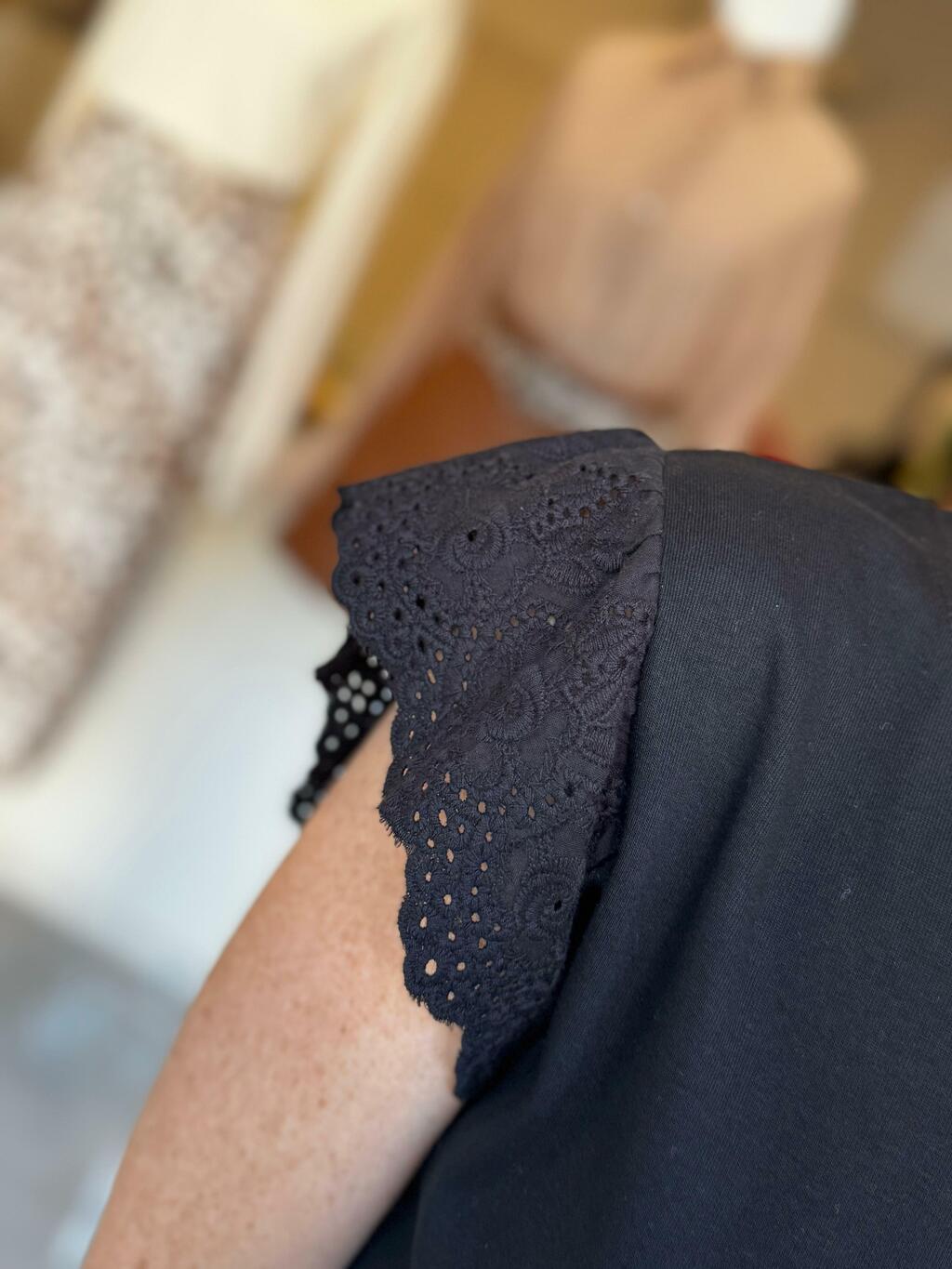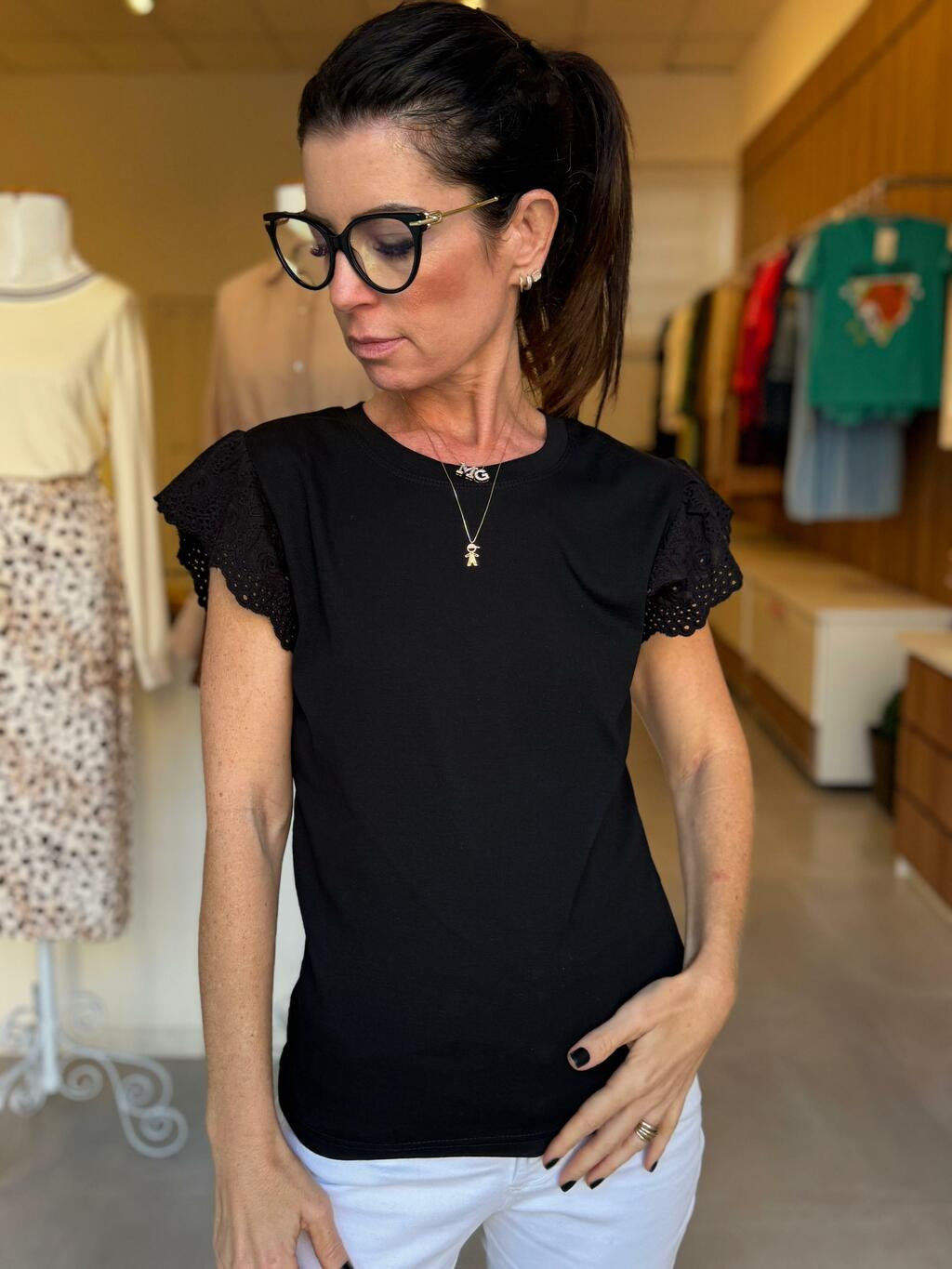 Esse é uma blusa toda básica na parte da frente, com mangas super delicadas em Laise, comprimento perfeito!