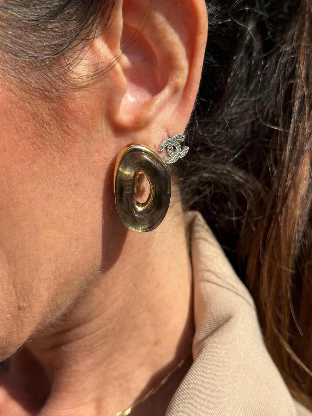 Com design elegante e marcante, este brinco em formato oval combina o dourado com o preto para criar um contraste sofisticado. Perfeito para compor um look todo preto, ele adiciona brilho e personalidade na medida certa. Um acessório versátil que transforma produções simples em visuais cheios de estilo.