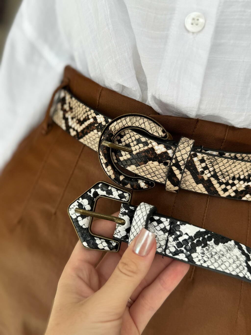 Elegante e moderno, este cinto em couro com fivela pequena é o detalhe que transforma qualquer look. O acabamento em estampa piton adiciona personalidade e sofisticação à peça, tornando-a versátil para combinações do casual ao elegante. Um acessório que valoriza a cintura com charme e praticidade.