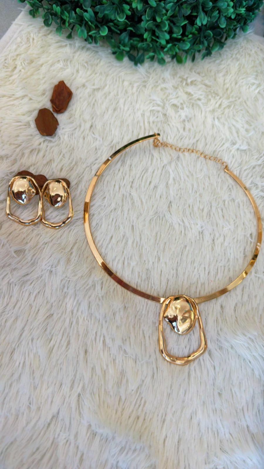 Esse conjunto dourado é a combinação perfeita de tendência e elegância. Composto por choker e brinco, ele eleva qualquer produção com sofisticação e estilo. Ideal para quem gosta de acessórios que fazem diferença, o conjunto traz presença e charme sem esforço, sendo versátil para looks do dia a dia ou ocasiões especiais. Um toque exclusivo que valoriza sua autenticidade em cada detalhe.
