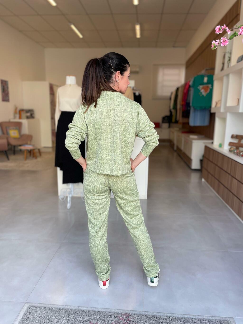Conjunto no Viscose com Poliester, calça com elástico, bolsos, blusa com zíper