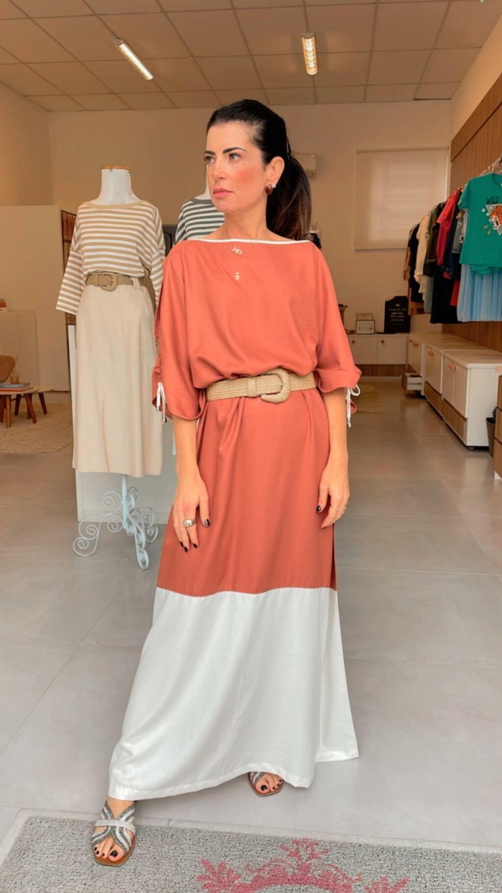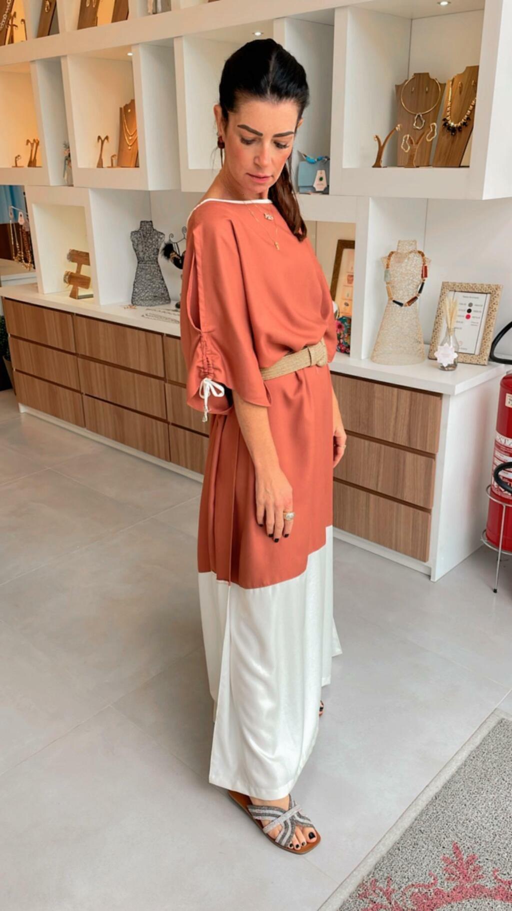 Kafta longa, no salmão com branco, longa e um lindo detalhe nas mangas!