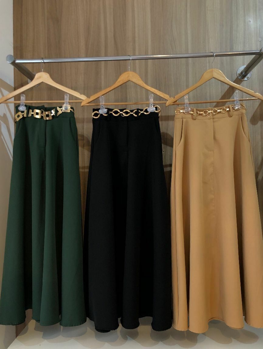 Saia longa, toda em Alfaiataria, bolsos, botão no mesmo tecido!